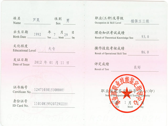 植保工职业证书