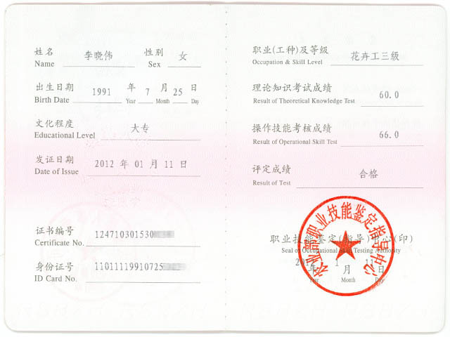 1.介绍:花卉工职业证书是劳动保障部门颁发的一种证书了,是上岗证,大专毕业必须持有的证书,园艺专业还可以考插花工,但是毕业以后在单位里要重新考过,考农业部门的,那个分量比这个重多了。