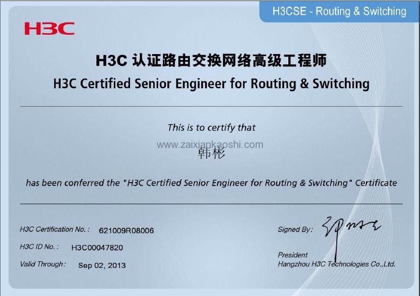 H3CSE Routing & Switching(H3C Certified Senior Engineer for Routing & Switching,H3C认证路由交换网络高级工程师)证书可以证明其持有者掌握了包括路由、交换、组播、VPN、QoS、基本安全特性等部署园区网络所需的全方位的理论知识和操作技能,可以胜任大中型复杂网络的建设和管理工作。