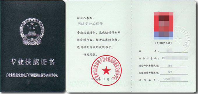 信息部产业电子人才交流中心用印的《全国信息化工程师证书》