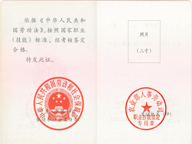 绿化工职业证书