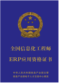 在ERP广泛应用的今天,"全国信息化工程师—ERP应用资格"双认证是持有者能力的证明和就业的通行证;持证者将同时加入全国信息化工程师人才库和用友ERP人才库。一证在手,您就首先赢得全国百万家ERP用户的优先聘用机会。