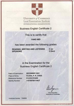BEC中级(BEC Vantage Level,缩略为BEC Van.),